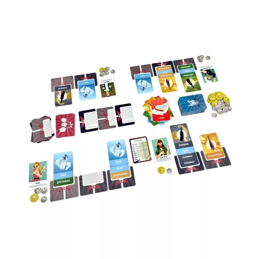 A Fröccs társasjáték remek választás egy csapatépítő buliba, baráti összejövetelre, vagy ismerkedős játékként egyaránt! Egy a lényeg: ismerd a fröccsöket, mint a tenyeredet, keverd te a legjobb italokat, de óvatosan, ugyanis résen kell lenned, nehogy az ellenfelek bekavarjanak valamit! Engedd el magad és mutasd meg ki a legjobb kocsmapultos, a rendelések nem veszik fel saját magukat!