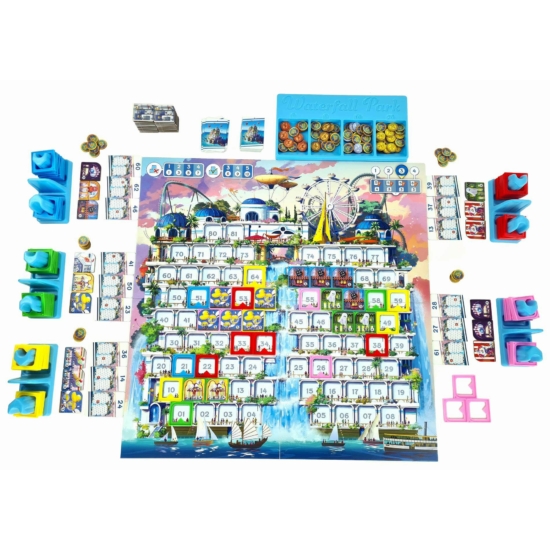 A Waterfall Park könnyed, klasszikus, családi társasjáték. A játékosok egymással alkudozva szereznek területeket, ahová felépíthetik a vidámpark látványosságait.